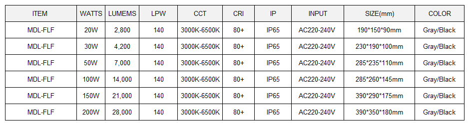 MDL High-power outdoor waterproof LED Flood Light Model:MDL-FLF